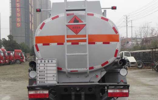 罐體有效容積:8.03立方米,危險貨物運輸車輛的類型為FL型,介質:柴油,煤油,汽油;類項號:3;罐體尺寸(長×長軸×短軸)(mm)為:4700×1750×1250;僅采用3800mm軸距;側、后防護裝置材料材質:Q235B, 側、后防護均采用螺栓連接,后防護裝置斷面尺寸為(mm):80×150,后部防護離地高度:450mm;隨底盤選裝駕駛室,選裝擋泥板樣式,選裝箱門樣式;安裝具有衛星定位功能的行駛記錄儀,排氣管前置,安裝前輪盤式制動器及限速裝置,限速80km/h,僅采用底盤子午線輪胎;ABS型號/廠家:ABS型號:ABS/ASR-24V-4S/4M,廠家:襄陽東風隆誠機械有限責任公司;發動機型號及油耗值(L/100km)為:YCS04190-68(21.1),D25TCIF1(21.1),D30TCIF1(21.1),D40TCIF1(21.1),NV30-C6D(21.1),CY4SK261(21.1),CY4SK361(21.1),YCY30165-60(21.1).