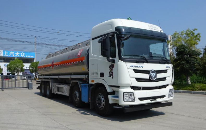 罐體總容量:26.5立方米,罐體有效容積:25.27立方米;危險貨物運輸車輛的類型為FL型,介質zui大密度715千克/立方米;罐體尺寸(長×長軸×短軸)(mm):8750×2350×1650;側、后防護裝置材料材質:Q235B,側、后防護均采用螺栓連接,后防護裝置斷面尺寸為(mm):80×150,后部防護離地高度:420mm;隨底盤選裝駕駛室,選裝罐體兩側管廂樣式及出口箱樣式,選裝罐體尾部帶落水管和后示廓燈支架;安裝具有衛星定位功能的行駛記錄儀,安裝前輪盤式制動器和限速裝置,限速80km/h,僅采用底盤子午線輪胎;安裝EBS,EBS型號/生產企業:0 486 106 XXX/克諾爾商用車系統企業管理(上海)有限公司;發動機型號及油耗值(L/100km)為:X11NS6B360(33.6),該車后軸采用空氣懸架;轉向輪安裝bao胎應急防護裝置.該車型可選裝ETC車載裝置;