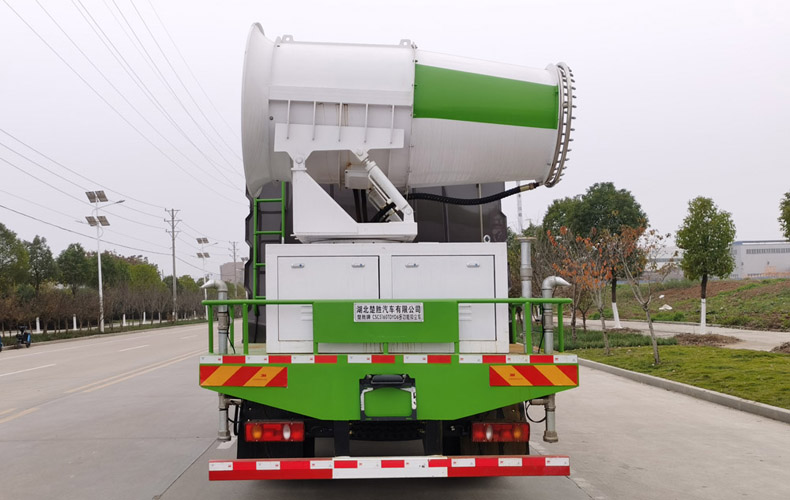 消防灑水車安裝消防車專用消防泵、消防炮、消防取力器。罐體后帶工作平臺,平臺上安裝綠化灑水炮,灑水炮可全方位旋轉,帶前沖后灑,帶側噴,可連續調成直流狀、霧狀、大雨、小雨、毛毛雨,帶安全護欄。罐體頂部安裝消防水炮。帶消防接口,可通過消防栓進水,帶自流閥,消防綠化卷盤。